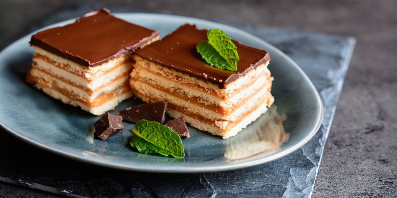 Розділіть тісто на п’ять частин і розкачайте їх прямокутними пластами розміром з деко. Для начинки горіхи подрібніть, покладіть їх у джем і перемішайте.