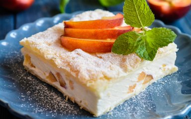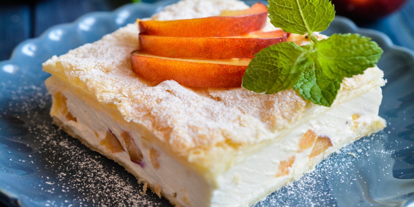 Десерт складається з двох шарів листкового тіста, складених один на одного, як сендвіч, і наповнених білковим кремом і мармеладом. Начинка може варіюватися, залежно від ваших уподобань: замість мармеладу можна використовувати джем, ягоди, шоколадну стружку тощо.