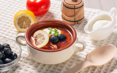 Класична подача солянки по-домашньому — з оливками та скибкою лимона. Саме це робить смак страви довершеним!