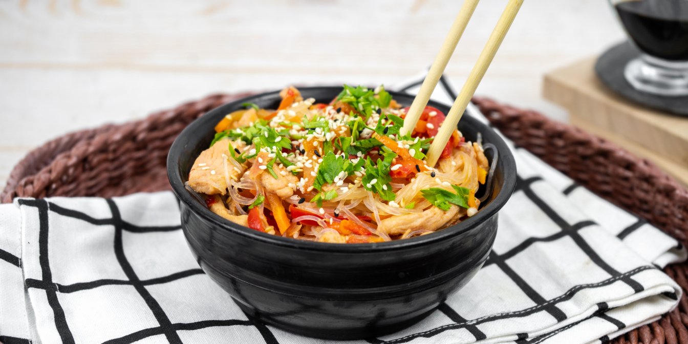 Якщо ви у захваті від азійських страв, то на вашій кухні обов’язково має знайтися місце для «скляної локшини» — фунчози. Вона дуже універсальна і добре поєднується з будь-яким м’ясом, овочами й морепродуктами. Сьогодні приготуємо фунчозу з куркою.