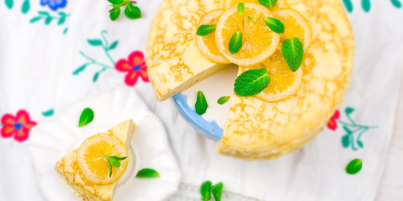 Щоб приготувати цей десерт, вам треба підсмажити млинці й сформувати з них торт, перемащуючи шари легким лимонним кисломолочним сиром. Той, хто любить цитрусові нотки, неодмінно оцінить!