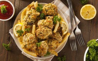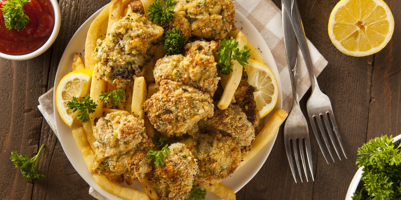 Устриці можна смажити, і страва виходить вишуканою: хрустка скоринка і ніжна м’яка серединка з пікантним смаком морепродуктів.
