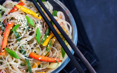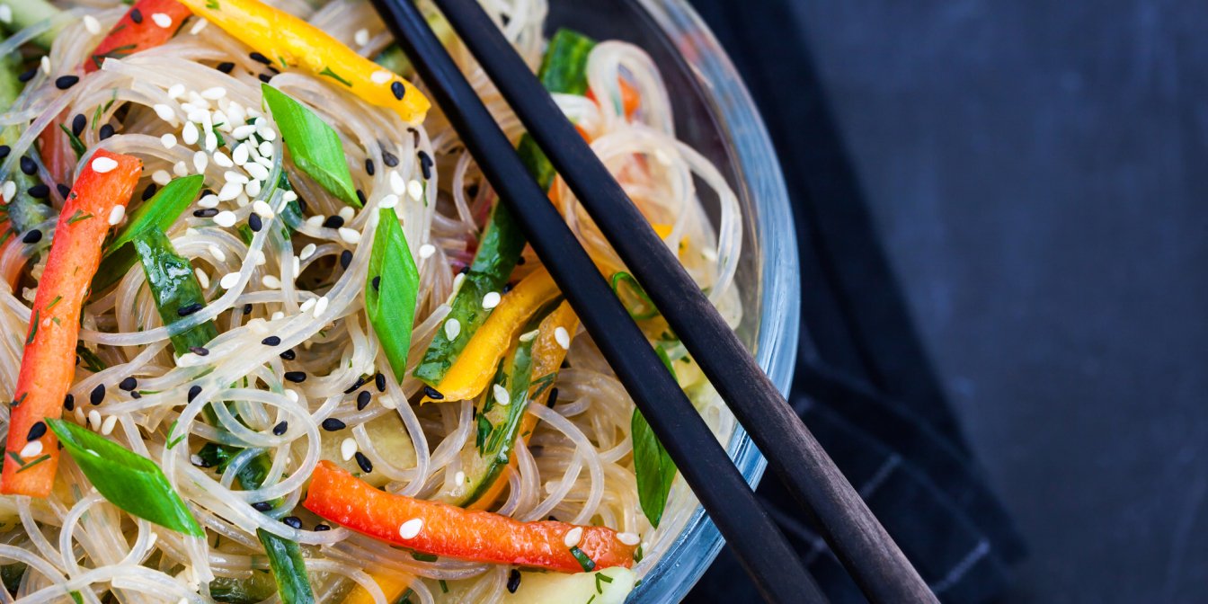 Проста у приготуванні страва для поживного обіду — фунчоза з беконом та овочами.