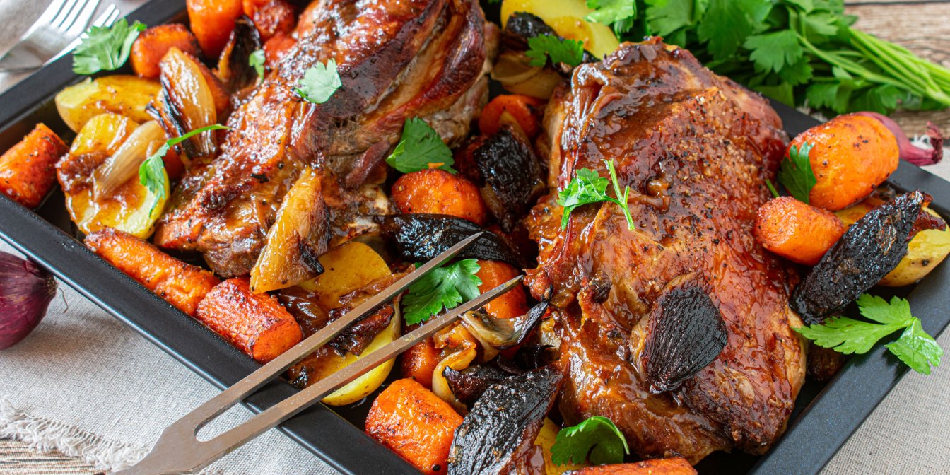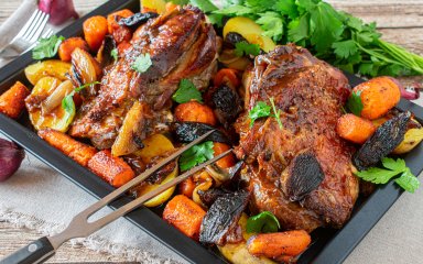 За пів години до готовності індички змастіть її декілька разів глазур’ю. Готові стегна дістаньте з духовки, поріжте і подавайте до столу.