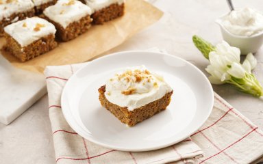 Брауні за цим рецептом готуються близько години. Вологі мʼякі тістечка випікаються до досконалості, а потім покриваються ніжною глазурʼю із вершкового сиру. Подавайте їх разом з ванільним морозивом для ідеального святкового десерту!