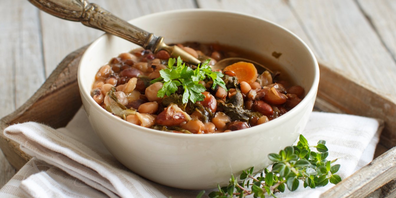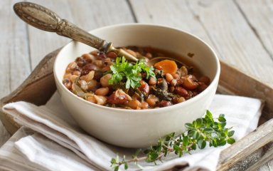 Готувати цей суп доволі просто, він має звичний склад інгредієнтів, до того ж ви можете використати як звичайну квасолю, так і консервовану — білу чи червону. Подавайте суп зі сметаною й смачними часниковими грінками.