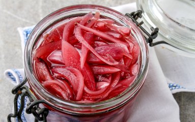 Цибуля шалот — ідеальний овоч для маринування. Кільця шалоту досить маленькі, щоб їх можна було з’їсти за один укус, але будь-яку страву здатні сильно покращити. Для маринованої цибулі шалот підготуйте сіль, цукор, яблучний оцет і чорний перець горошком.