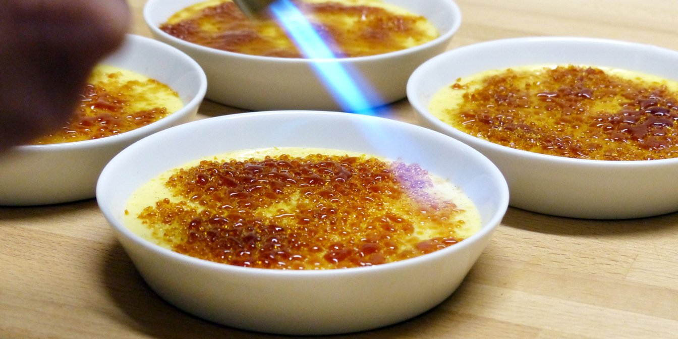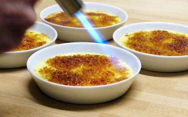 До складу входять вершки, молоко, яйця, цукор й крапля ванільного екстракту. Десерт готується в духовці, після чого його потрібно охолодити. Якщо ви маєте пальник для карамелі, радимо додати дрібку цукру в креманку й трохи обпалити готовий десерт — він матиме неповторний присмак і святковий вигляд.