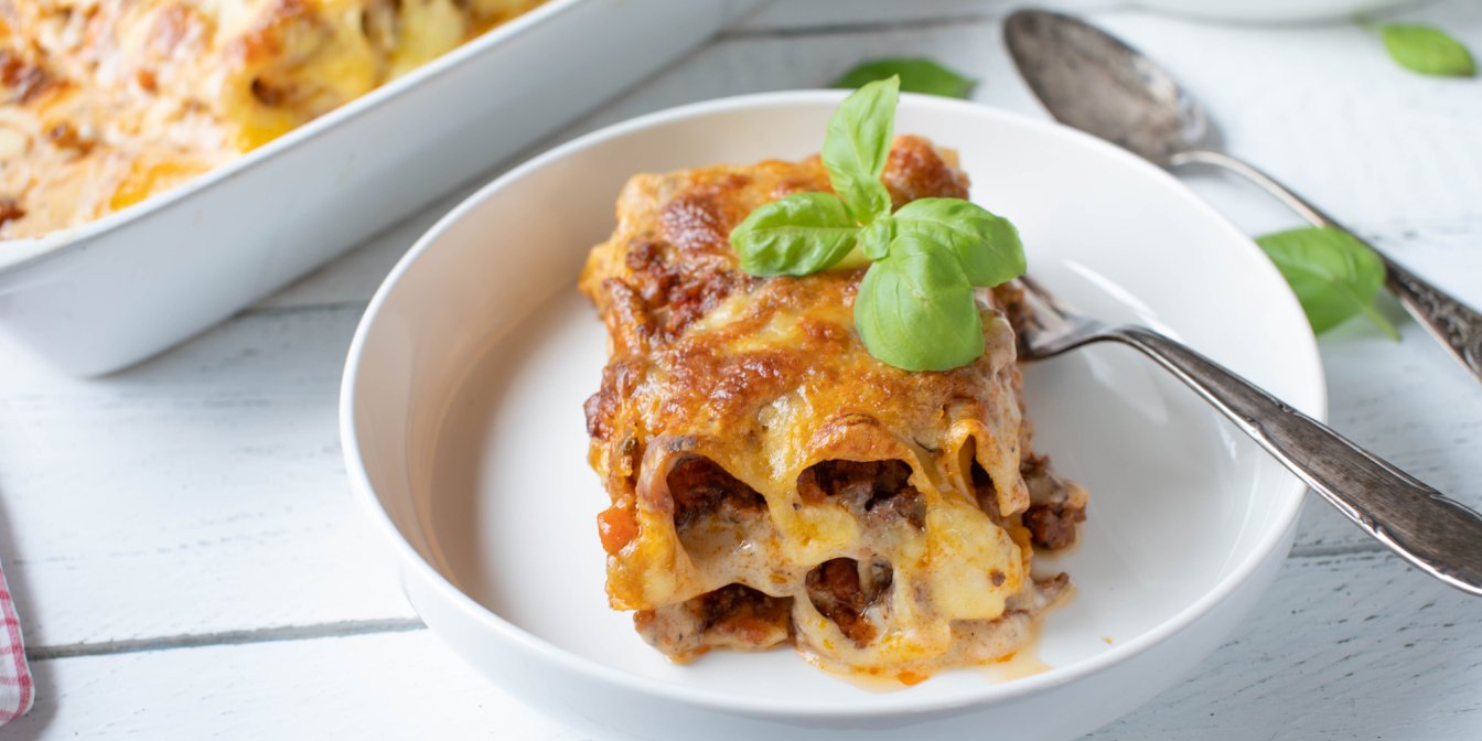 Паста канелоні з фаршем з телятини та яловичини під ніжним соусом бешамель стане вишуканою стравою на обід або вечерю.