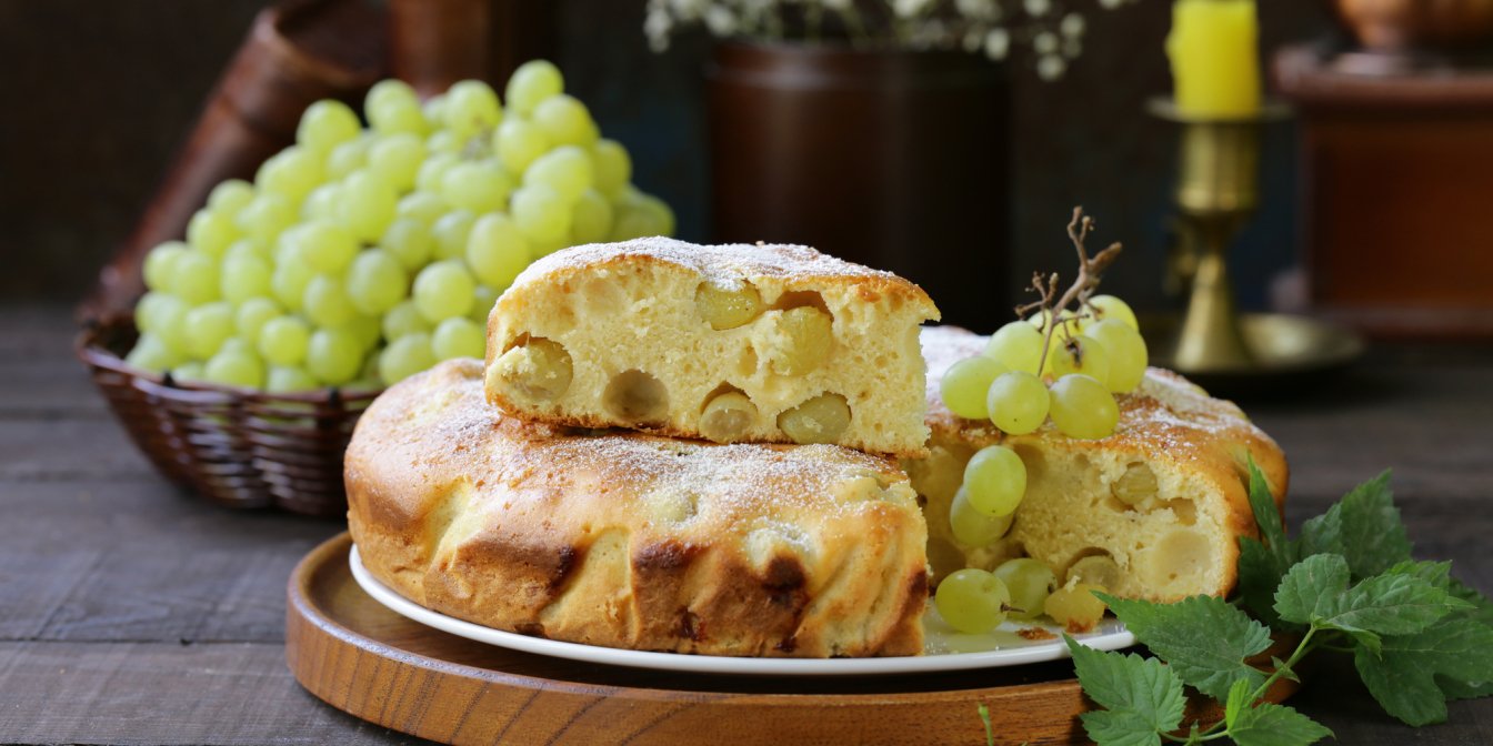 SHUBA радить обрати для цього рецепту саме зелений виноград без кісточок — він досить солодкий, і вам не доведеться виймати кісточки під час їжі. Зверніть увагу, що тісто для пирога готують на дріжджах, тож він виходить досить м’яким і повітряним.