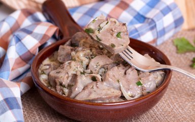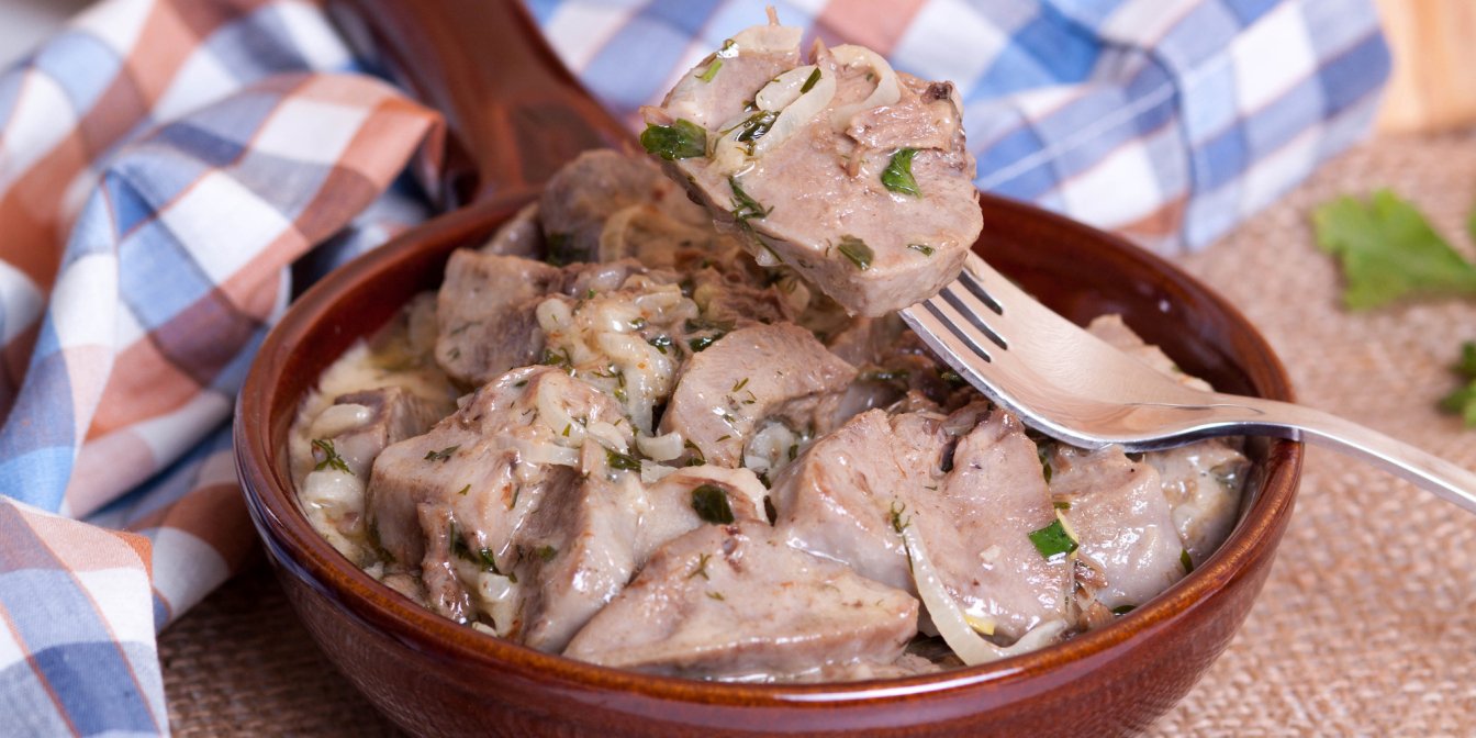 Для реалізації цього рецепту потрібні всього два основні інгредієнти — яловичина і цибуля, і кілька допоміжних, наприклад, сметана, борошно, гірчиця. Кінцевим результатом буде дуже смачна і багата страва.