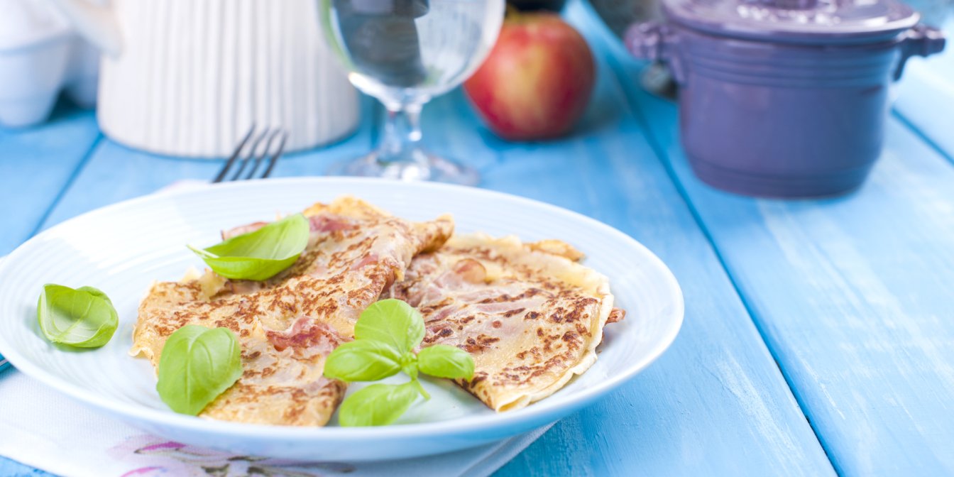 Власне, голландські паненкок — це тонкі млинці, які можна подавати як солодкими, так і солоними. Останній варіант ми й запропонували, додавши шинку й сир.