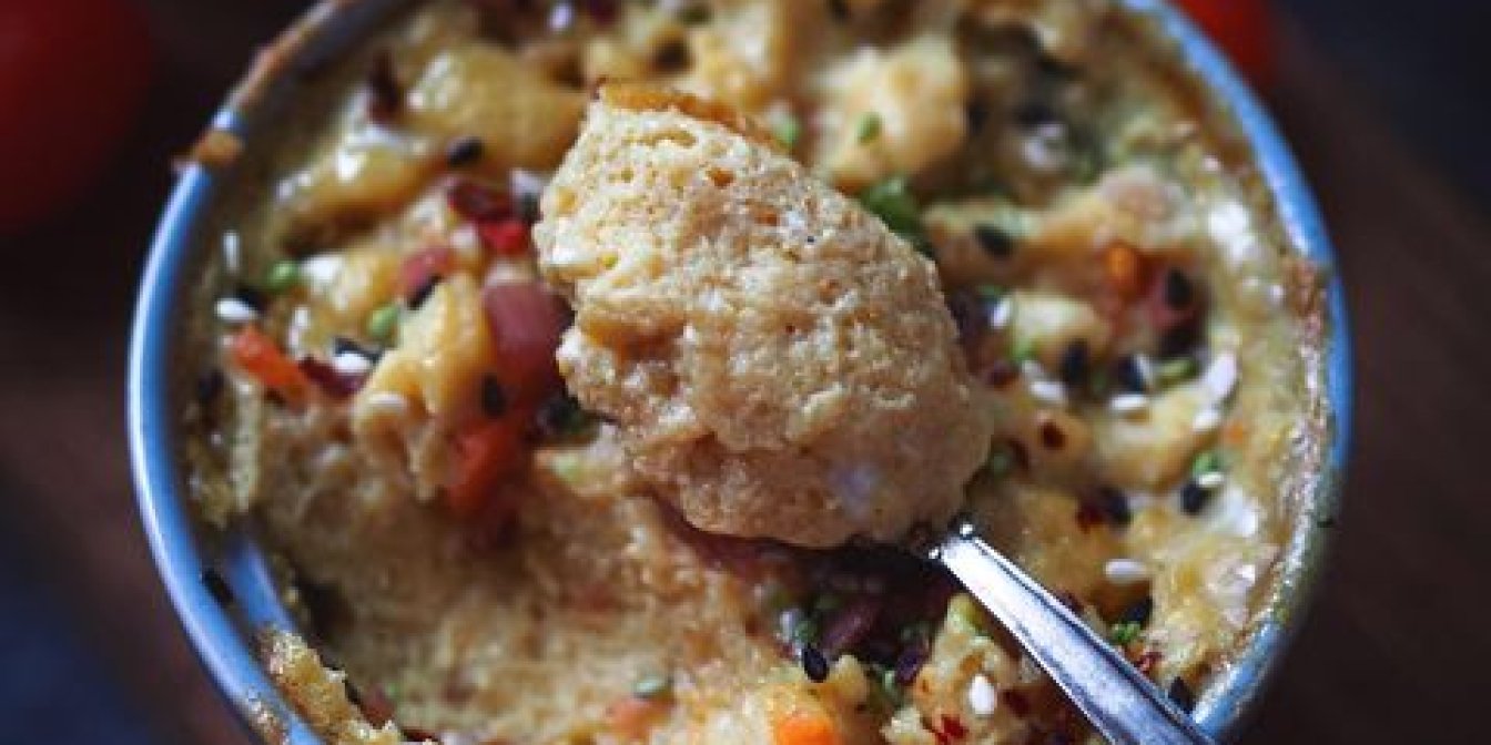 Рецептура цього омлету доволі універсальна та дозволяє змінювати додаткові інгредієнти, в нашому випадку овочі, та їхню кількість. Після того, як омлет буде готовий, прикрасьте його кунжутом, зеленню та пластівцями чилі.