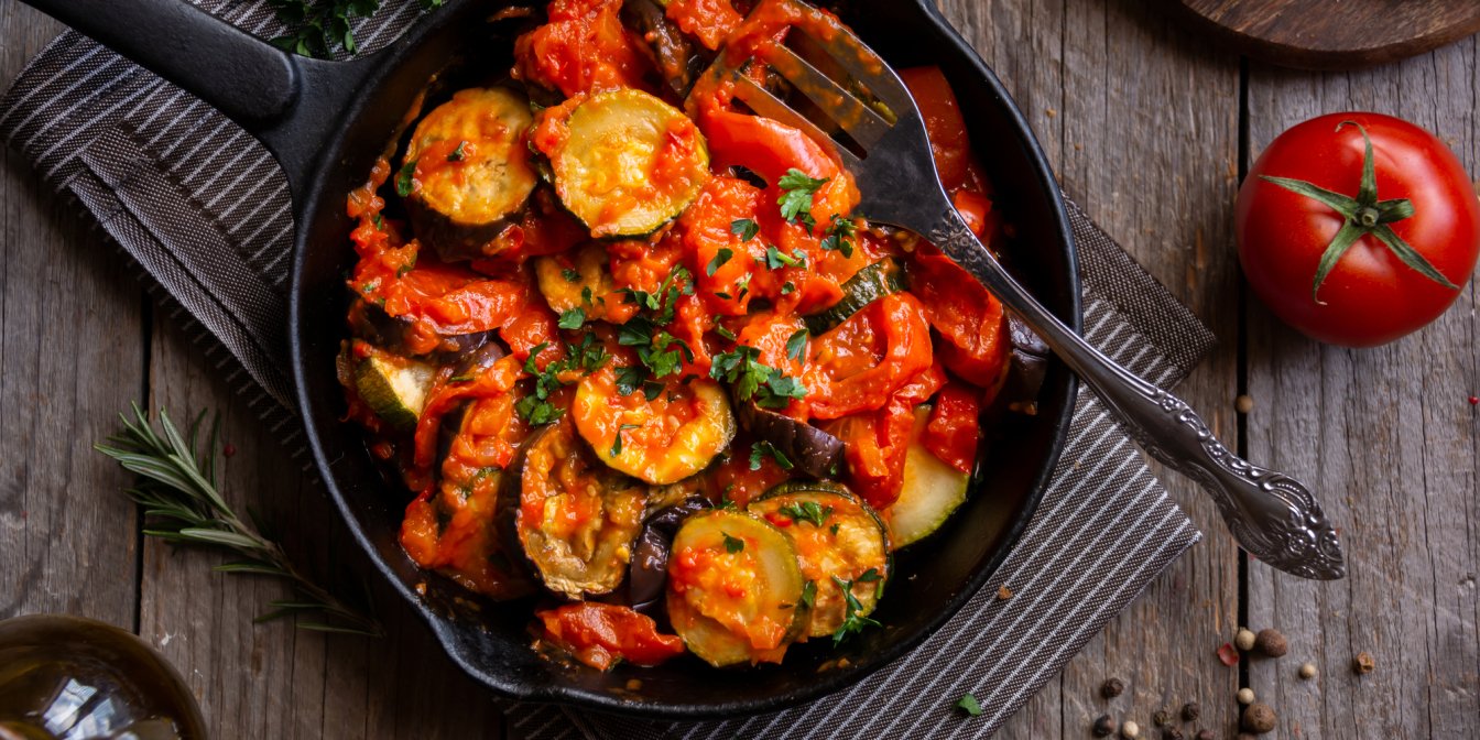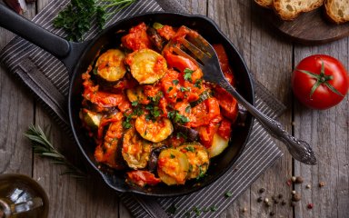 Під час приготування овочевий мікс набуває густої консистенції, а смаки з’єднуються разом в довершеній гармонії. Ключ до багатого смаку також лежить у краплі бальзамічного оцту, яка додає тушкованим овочам нотку пікантності. Це рагу не боїться приправ, тому ми радимо додати розмарин і трохи часнику.