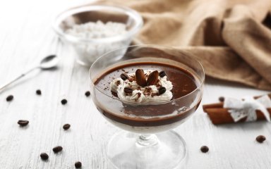 З’єднайте кавову суміш і желатин, добре перемішайте. Розлийте десерт у формочки і поставте в холодильник до повного застигання, на кілька годин.
