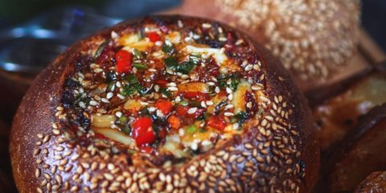 Єдина складність тут — знайти буханець такого розміру, щоб умістити в нього голівку сиру. У супроводі — запечена картопля та мариновані огірки, або щось ваше улюблене.
