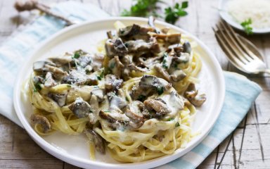 У цьому рецепті ми використовували заморожені лісові гриби, але це можуть бути і свіжі лісові гриби чи більш доступні печериці. Також добре смакуватиме грибний мікс!