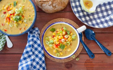 Як і всі осінні супи, наш кукурудзяний чудово зігріває. За це відповідають тертий імбир і перець чилі. Як альтернативу можна використовувати мелений імбир і пластівці червоного перцю. Страва не тільки надзвичайно проста і швидка, а й досить бюджетна.