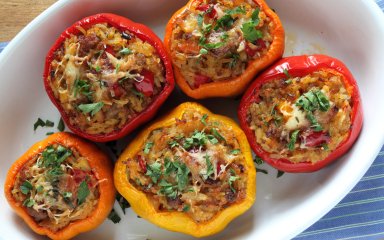 Барвиста, легка та смачна страва — перець, фарширований рисом, курятиною і кукурудзою, дуже проста у приготуванні та надзвичайно смачна.