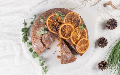 Подавайте пиріг, просто посипавши його цукровою пудрою, збризнувши кількома ложками апельсинового сиропу або намастивши йогуртовою глазур’ю. Прикрасьте карамелізованими апельсинами, посипте фісташками та подавайте.