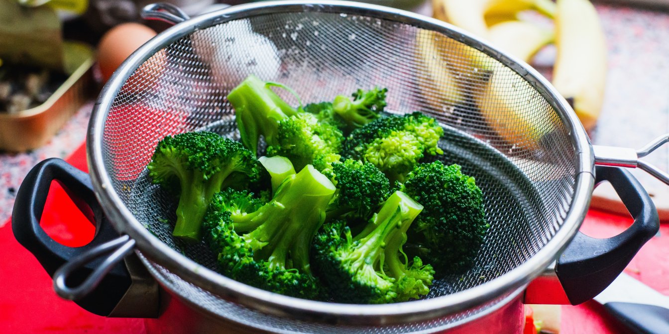 Додайте броколі в кошик пароварки поверх картоплі та цибулі. Підсоліть, накрийте кришкою і готуйте на пару, поки броколі не стане м’якою (від 3 до 5 хвилин).