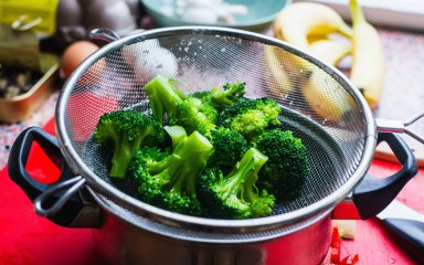 Поставте кошик для пароварки у велику каструлю, наповнену водою на 3 см. Накрийте пароварку кришкою і доведіть воду до кипіння.