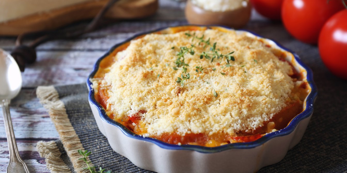 Овочевий крамбл вдасться і тим, хто не вміє працювати з тістом. Вам лише треба перетерти борошно з вершковим маслом до крихти і посипати ними овочеву суміш. Простіше важко вигадати!