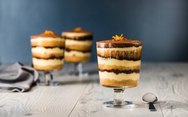 Цей рецепт сподобається всім любителям традиційного тирамісу. Однак кави тут немає зовсім. Є темний шоколад і апельсиновий сік — чудова комбінація!
