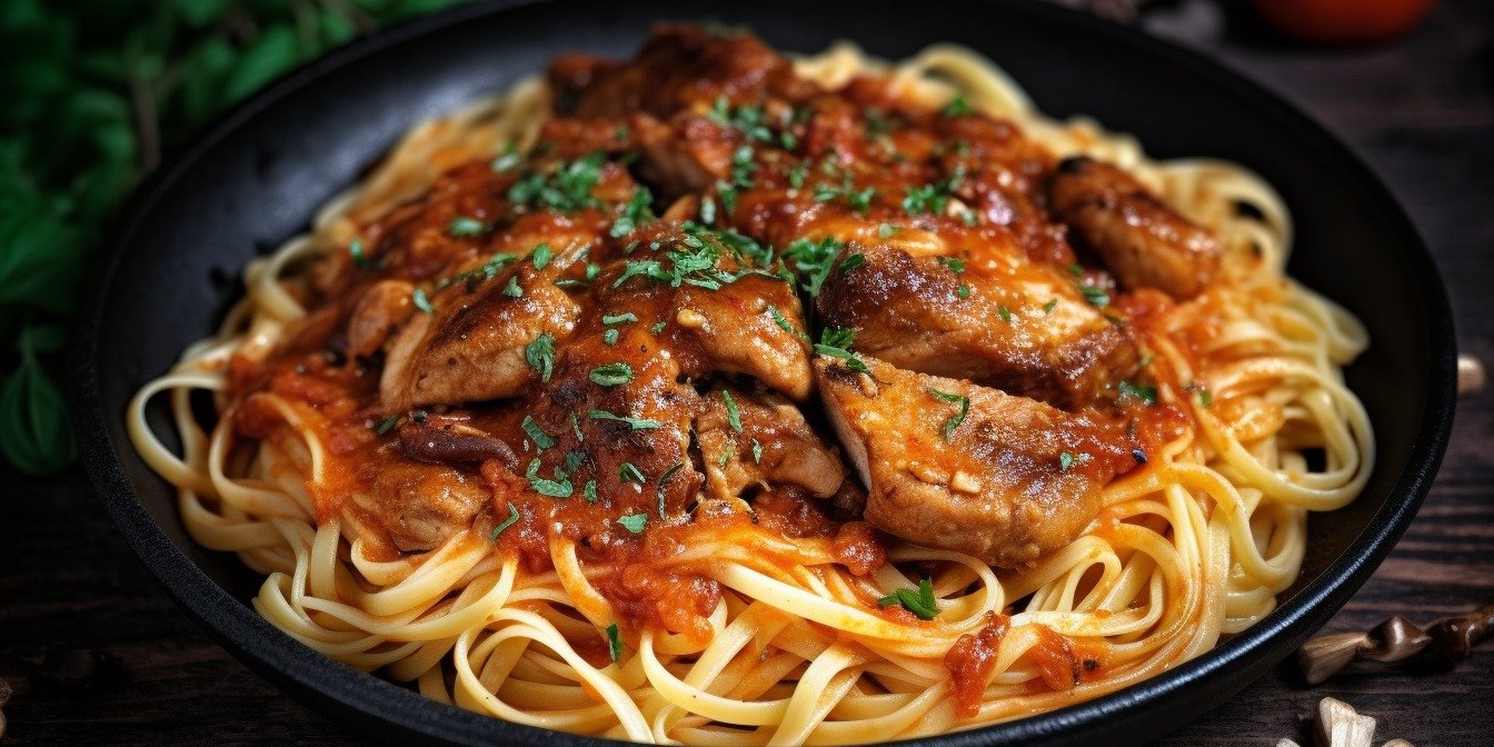 Ідеальним гарніром до карамелізованої курки можуть стати макаронні вироби, розсипчастий рис або ніжне картопляне пюре, ну, а ми куштували курочку зі спагеті.