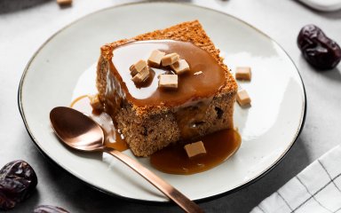 Полийте кекс солоною карамеллю і подавайте його із пряним какао з маршмелоу.