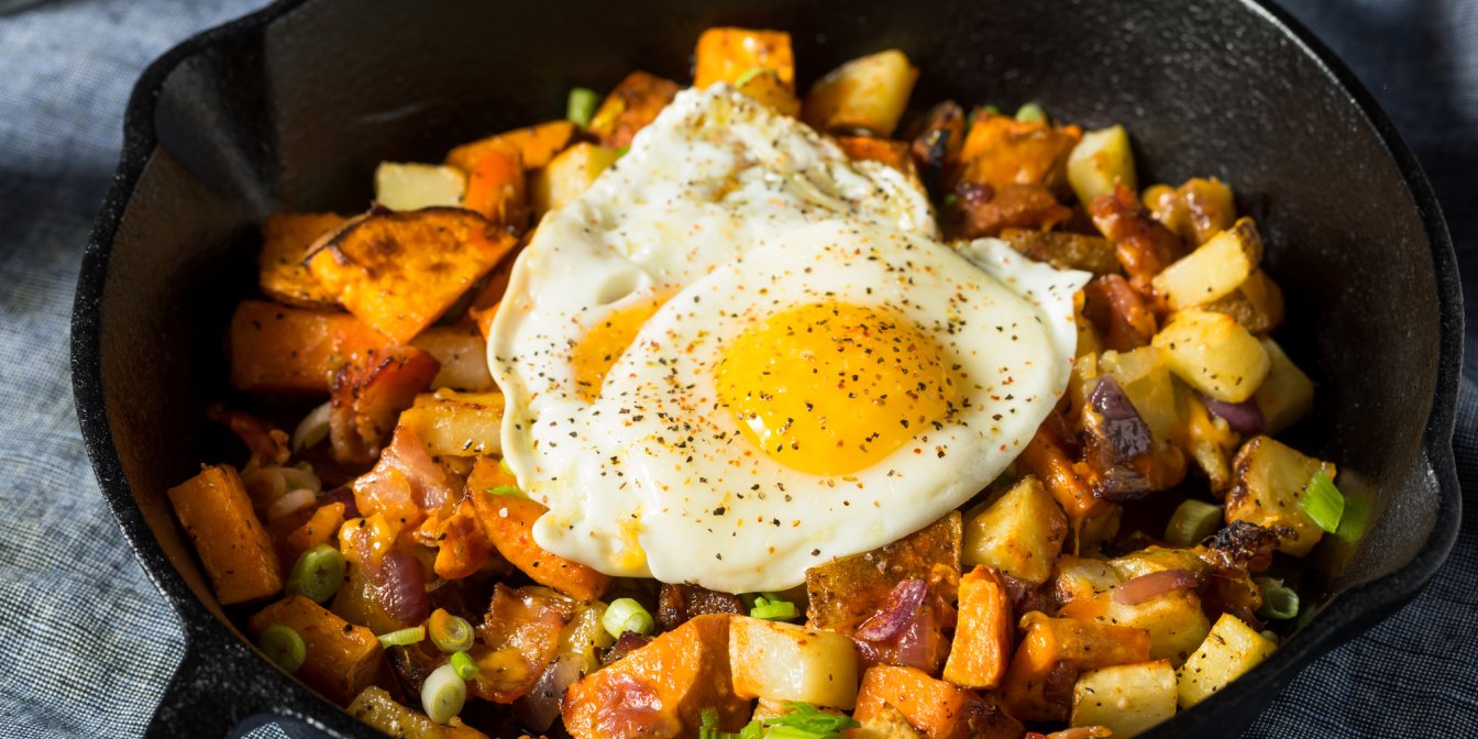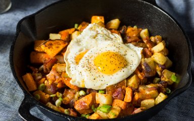 Якщо хочеться чогось ситнішого і жирненького — приготуйте хеш із хрумким беконом.