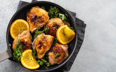 Як приготувати соковиті курячі стегна в лимонному соусі? Знає Гордон Рамзі. Він пропонує спочатку обсмажити м’ясо на сковороді, потім запекти його у духовці, щедро поливши лимонним соусом зі спеціями.