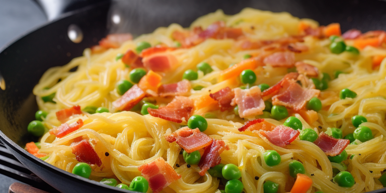 Смачний і ситний весняний омлет зі спагеті — це швидка і проста страва, що ідеально підходить для ланчу або швидкого сніданку.