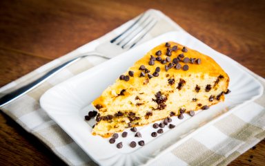 Цей сирний пиріг має характерний вигляд — його можна легко впізнати за безліччю смачних шоколадних крапельок на поверхні.