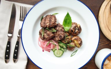 Якщо вам хочеться чогось смачного, але небанального — спробуйте приготувати фрикадельки з родзинками у духовці зі свинячого фаршу. Вони подаються разом з огірковим салатом з кедровими горіхами та ложкою густого йогурту. Звучить небанально? Так і є!