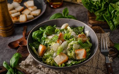 Свіжий та поживний салат з куркою і сухариками стане чудовим варіантом обіду для всієї родини.