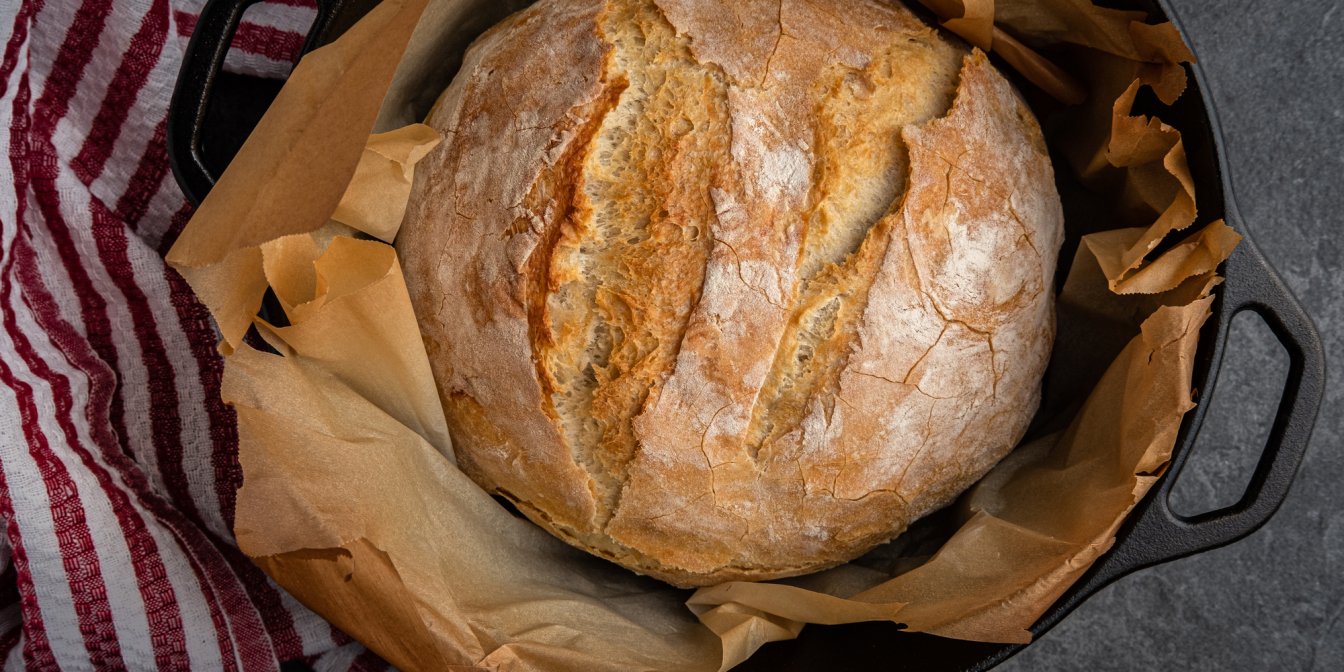 Свій хліб фудблогерка Дарія Дорошкевич називає найпростішим. Потрібно замісити тісто, двічі провести процедуру розтягування та залишити в холодильнику. Особливість полягає в тому, що ви можете пекти його хоч за 12, хоч за 24 години. Від цього хліб буде тільки смачнішим.