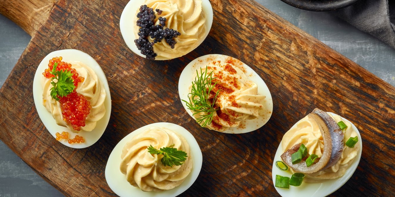 Яйця, фаршировані лососем і вершковим сиром, або яйця, фаршировані оселедцем і буряком? Ми підготували для вас багато варіантів з різною смачною начинкою: від морепродуктів до гуакамоле. На будь-який смак і гаманець!