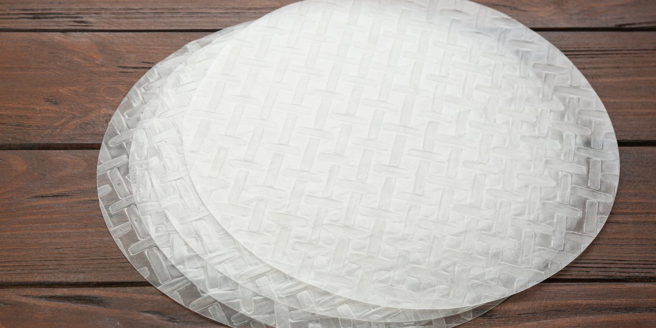 Рисовий папір часто продається в сушеному вигляді як тонкий, хрусткий круглий аркуш. Перед використанням вам потрібно буде його повторно зволожити, щоб він став м’яким та гнучким.