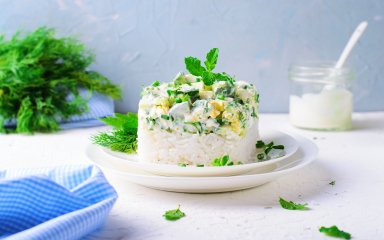 У цьому салаті поєднання рису з рибою, яйцями та огірком — це з одного боку класика, з іншого — щось нове, оригінальне та цікаве. Спробуйте! Також радимо доповнити морський салат гарним білим вином.