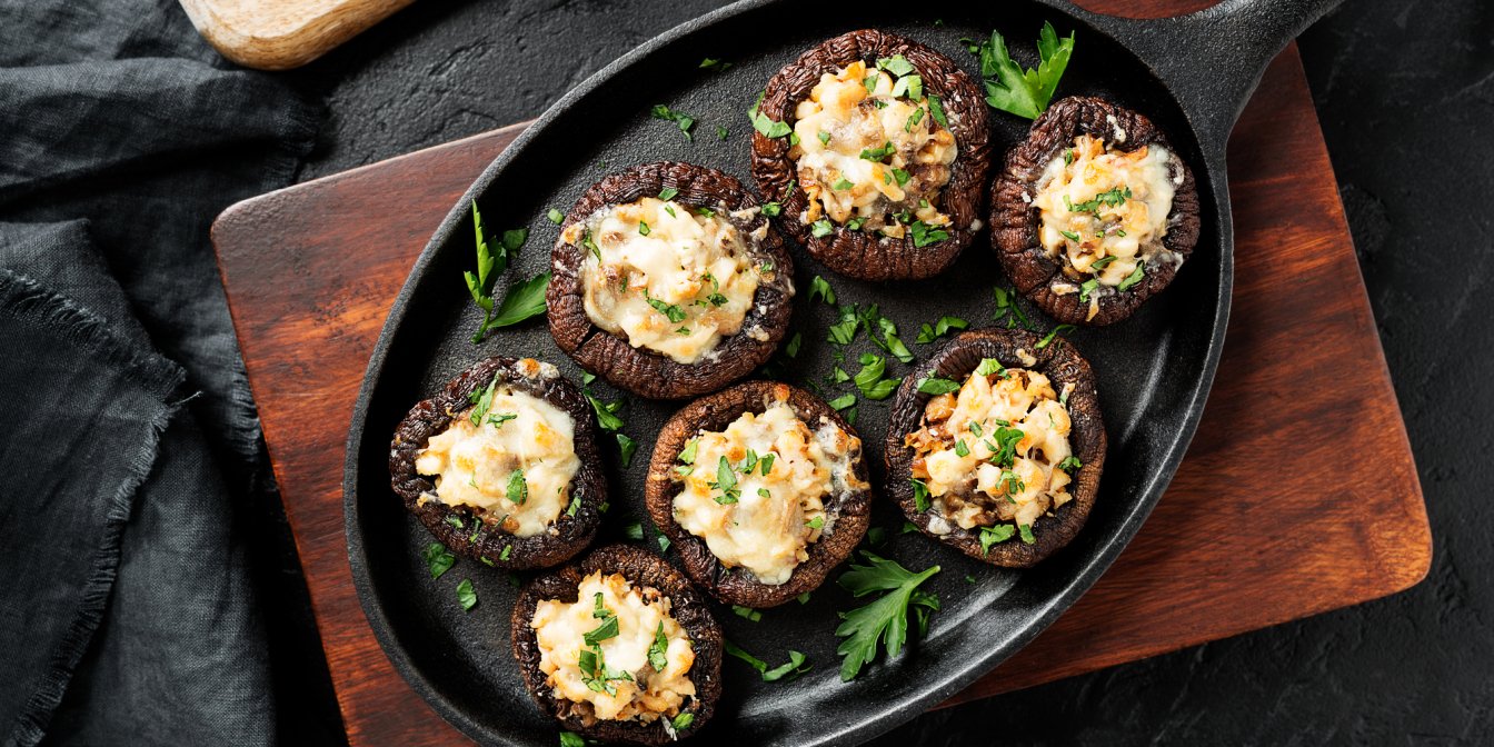 Фаршировані печериці з м’ясом — ідеальна закуска для вечері з друзями, але вони також можуть стати смачною основною стравою, якщо подати їх з гарніром. Крім того, цю страву можна готувати в будь-яку пору року, оскільки наявність печериць у магазині не залежить від сезону.