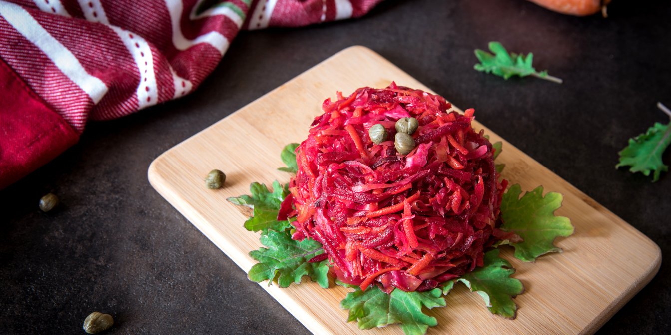Буряк — коренеплід, який містить багато поживних речовин (клітковина, марганець, мідь, калій, магній, вітаміни С та В6, залізо), а ще він низькокалорійний (на 100 г вареного буряку — 44 калорії). Ми вирішили використати ці якості овочу і приготувати з нього салат, який вразить вас оригінальним і насиченим смаком.