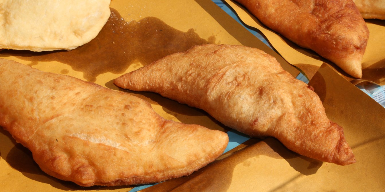 По черзі обсмажте піци у фритюрі, перегортаючи їх шумівкою до рум’яного кольору з усіх боків.