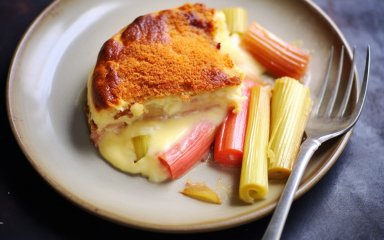 Вам потрібно буде запекти заварний крем у духовці, а потім так само запекти ревінь і подати їх разом. Повірте, це неймовірна комбінація. Кисло-солодкий ревінь приємно контрастує з вершковою ніжністю заварного крему. Це просто ідеальний, легкий і свіжий, десерт для літа. Подавайте його зі свіжим охолодженим лимонадом з ревеню.