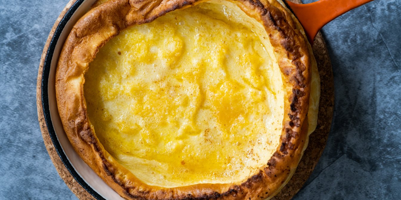 Це пухкі млинці, запечені в духовці, схожі на йоркширські пудинги. Ця випічка для сніданку готується з рідкого тіста з борошна, молока, яєць, цукру, ванілі та солі. Під час випікання тісто надувається та піднімається над краями страви. Насправді, це тісто має більше спільного з крепами, ніж з панкейками. Під час приготування не додають розпушувач — воно підростає завдяки взаємодії тепла духовки та білків яєць. До речі, вам не треба попередньо розігрівати духовку. Повільне накопичення тепла дає яєчним білкам час підрости та застигнути, в результаті чого виходять німецькі млинці з неймовірно високими та хрусткими краями та насиченим заварним кремовим центром.