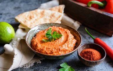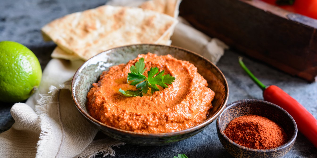 Мухамара, або мхамара — це гострий соус родом з Близького Сходу. Чи не найбільше його полюбляють в Сирії. Готується мухамара на основі червоного перцю, горіхів і ароматних спецій. Подавайте з лавашем чи крекерами!