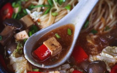 Готується з пекінською капустою. Для більшої ситності можна додати рисової локшини до свого смаку.
