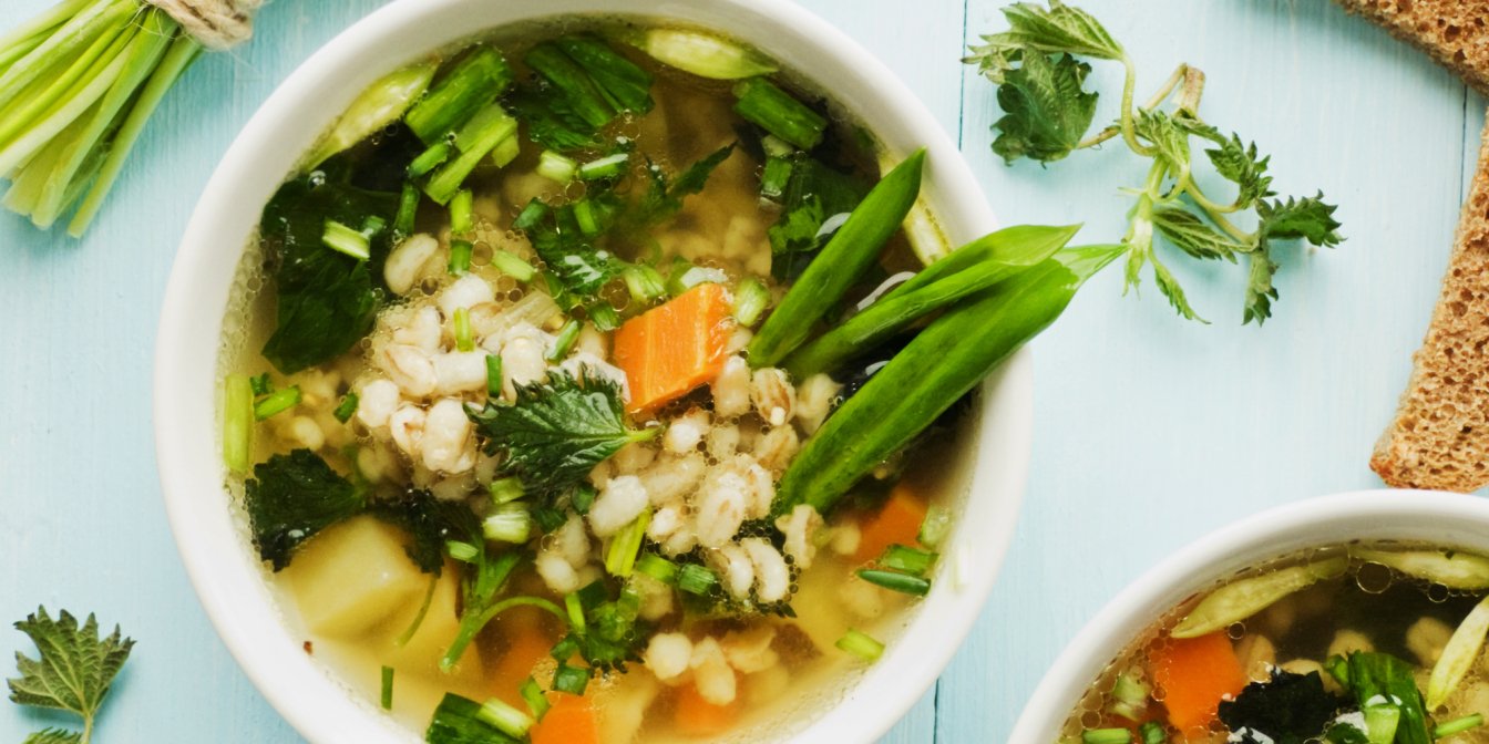 Легкий перловий суп із весняною зеленню сповнений вітамінів та мінералів, необхідних нашому організму в цю пору року.