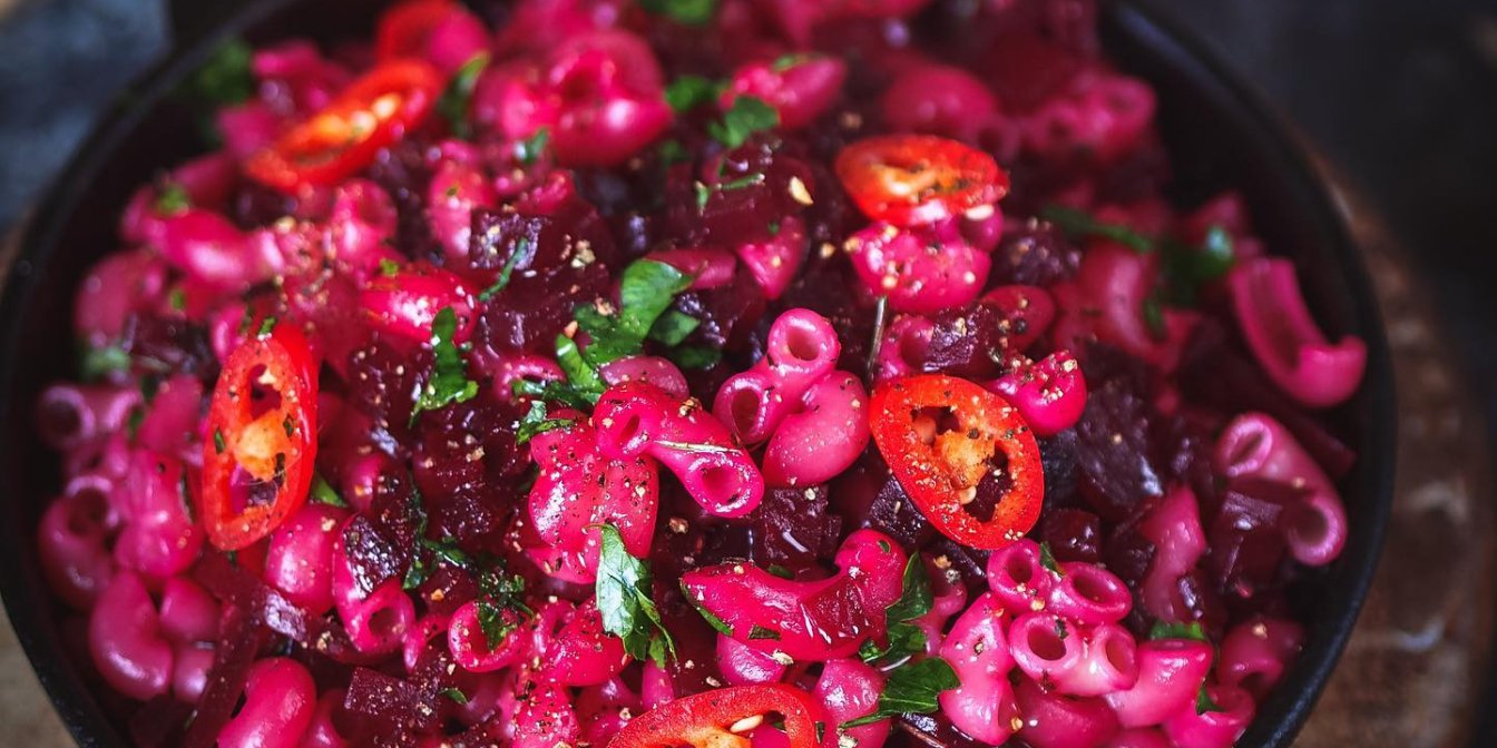 Макарони з буряковим соусом
