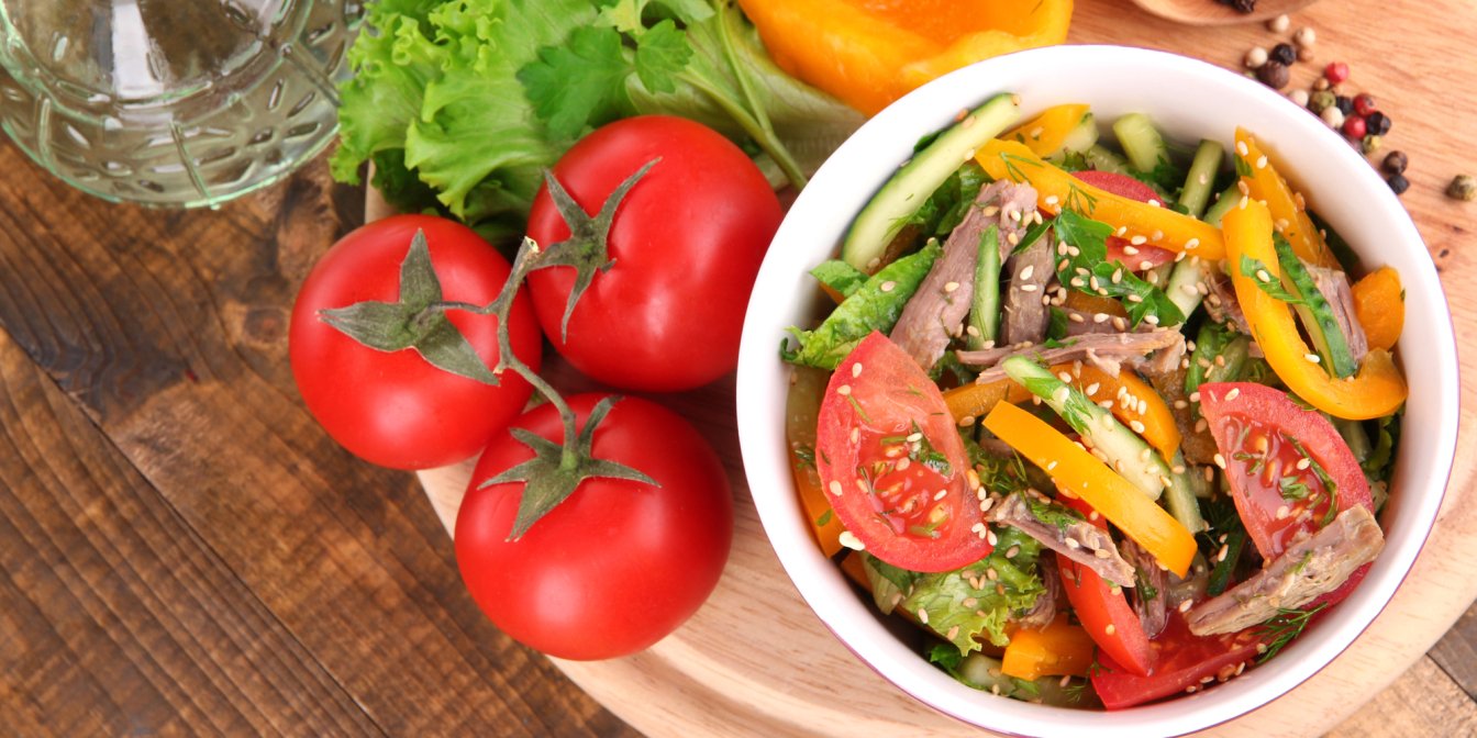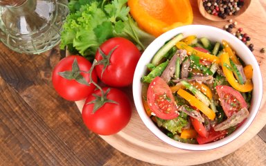 Цей простий салат з яловичиною та овочами — ідеальний для білкової поживної вечері.